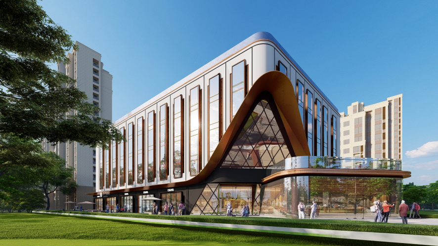 从效果图来看,整个建筑体非常精致,大面积玻璃十分瞩目。