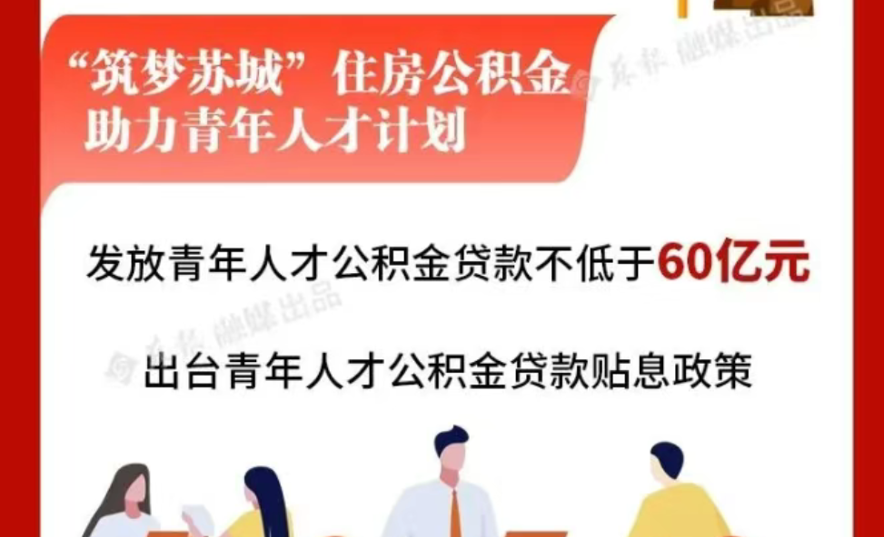 近日,苏州官宣,将出台青年人才公积金贷款贴息政策,发放青年人才公积金贷款不低于60亿,今年就要落地!