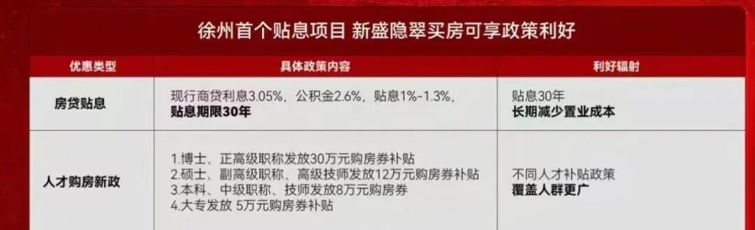近日,徐州国企——新盛地产集团旗下的新盛·隐翠项目正式官宣:在现行商贷利率3.05%、公积金利率2.6%的基础上,直接贴息1%-1.3%,贴息期限长达30年。